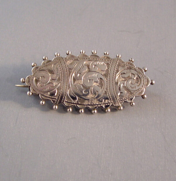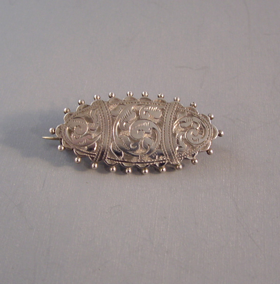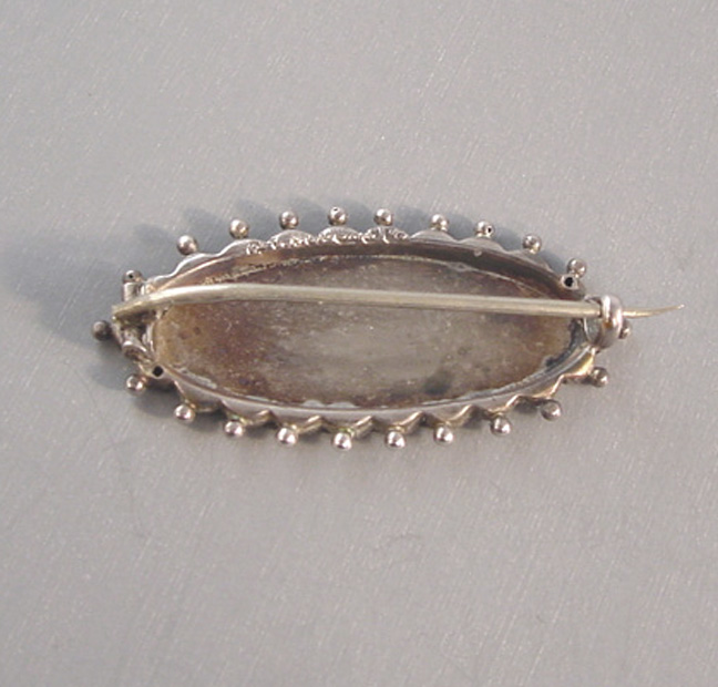 VICTORIAN sterling silver sweetheart eye-shaped pin with leavesProduct #V38265 All items in excellent vintage condition unless otherwise noted.