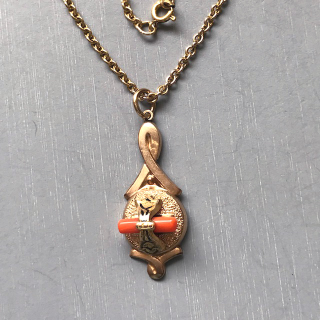 VICTORIAN stick coral pendant in a gold filled setting on a gold filled chain