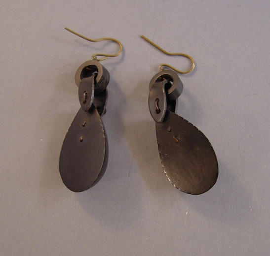 VICTORIAN vulcanite pendant earrings with wonderfully detailed beads and hearts designProduct #V37927 All items in excellent vintage condition unless otherwise noted.