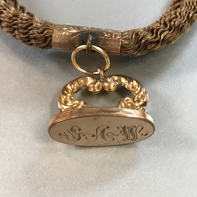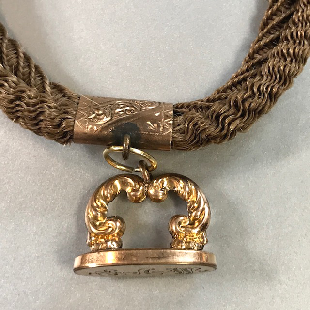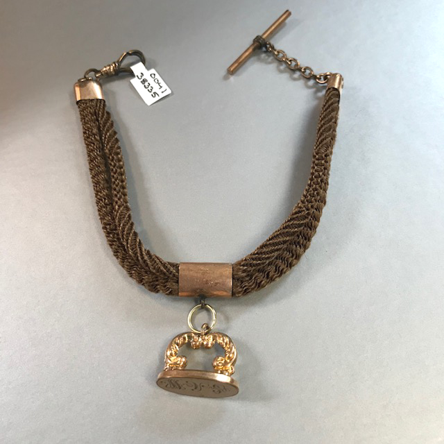 VICTORIAN woven hair watch chain and gold filled fobProduct #38335 All items in excellent vintage condition unless otherwise noted.