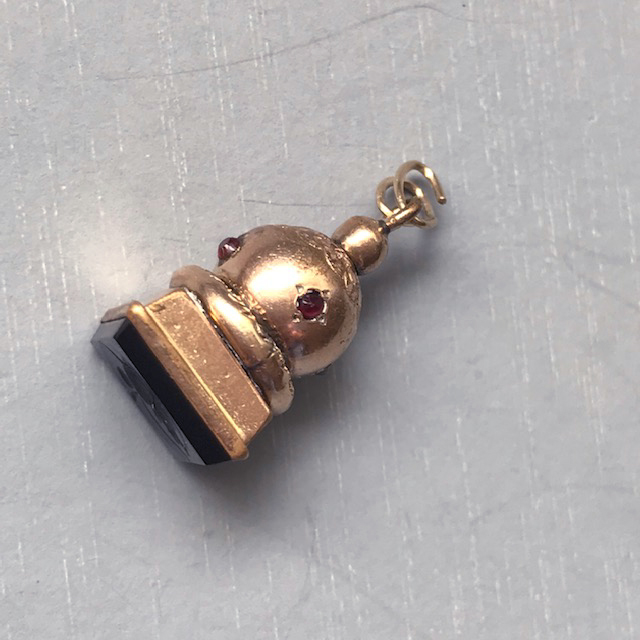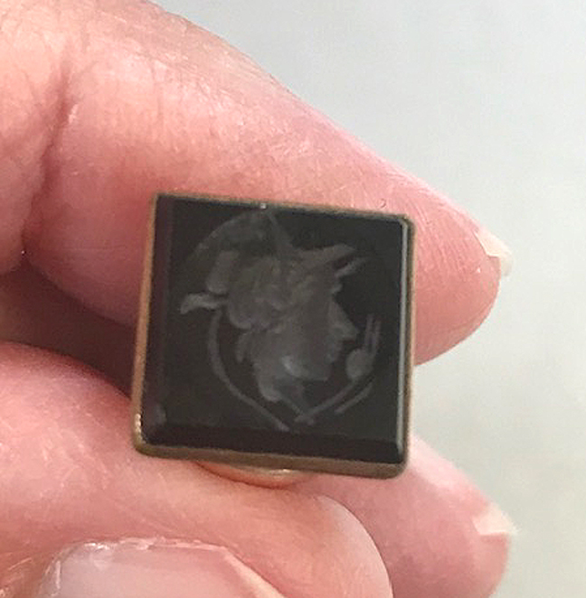 VICTORIAN yellow gold tone metal 4-sided wax seal watch fob with a black warrior's head intaglioProduct #V40893 All items in excellent vintage condition unless otherwise noted.