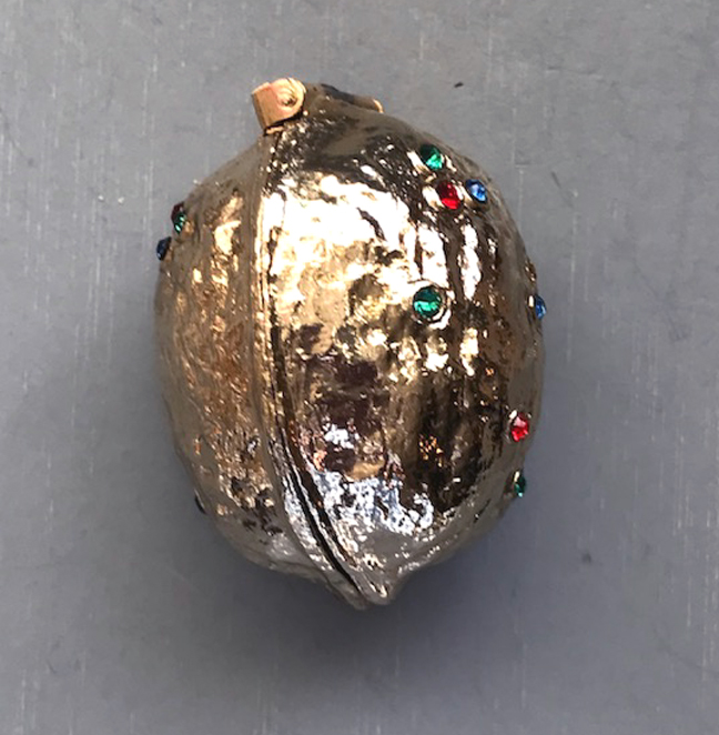 WALNUT etui, a Mosell style walnut shaped etui that is a bit larger than the size of a real walnutProduct #a42726 All items in excellent vintage condition unless otherwise noted.