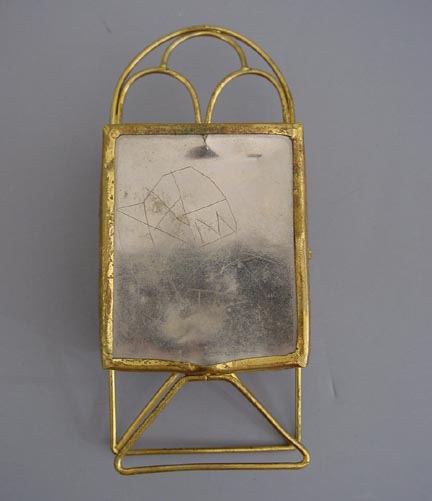 WATCH holder lined in soft green tufted fabric, beveled glass