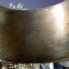 This has a safety chain at the back, and it's about 2-1/2" wide at the front, 6-5/8" wearable wrist size and 1-1/3" opening. It is signed and dated on the inside. ViewViewView Product #X36186