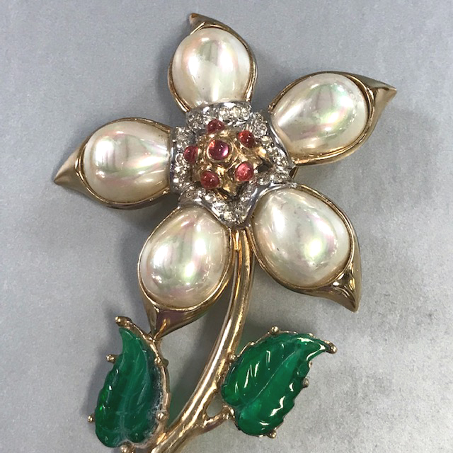 BoucherCarnegieCoroCostume Jewelry, unsignedDeMario, EugeneDeRosaEisenbergHobeJulianaMcClelland BarclayMiriam HaskellRegencyRosensteinSchiaparelliSchreinerShultz bakeliteSigned JewelrySigned, miscSwarovskiTrifariVendomeVrbaWeiss