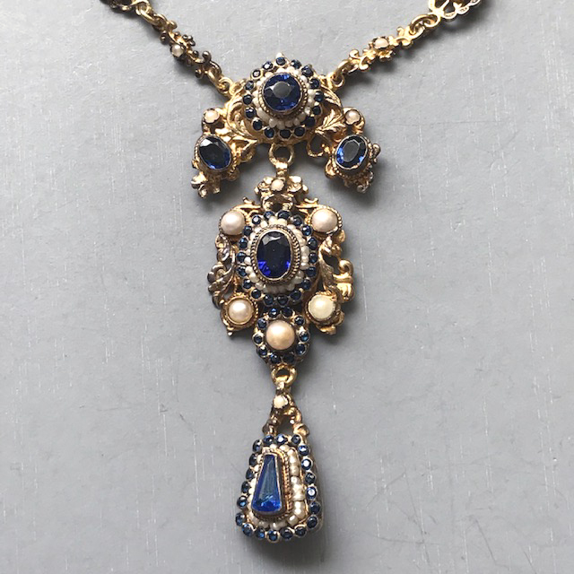 AUSTRO-HUNGARIAN genuine AMETHYST Renaissance inspired necklace with mother-of-pearl accents in a gold plated silver setting. The amethyst is said to promote peace and calmness, which we could certainly use in our world. It has the boar’s head hallmark on the clasp as well as the mark “<12″, the meaning of which we do not know. … Continue reading “AUSTRO-HUNGARIAN genuine AMETHYST Renaissance inspired necklace with mother-of-pearl accents in a gold plated silver setting”