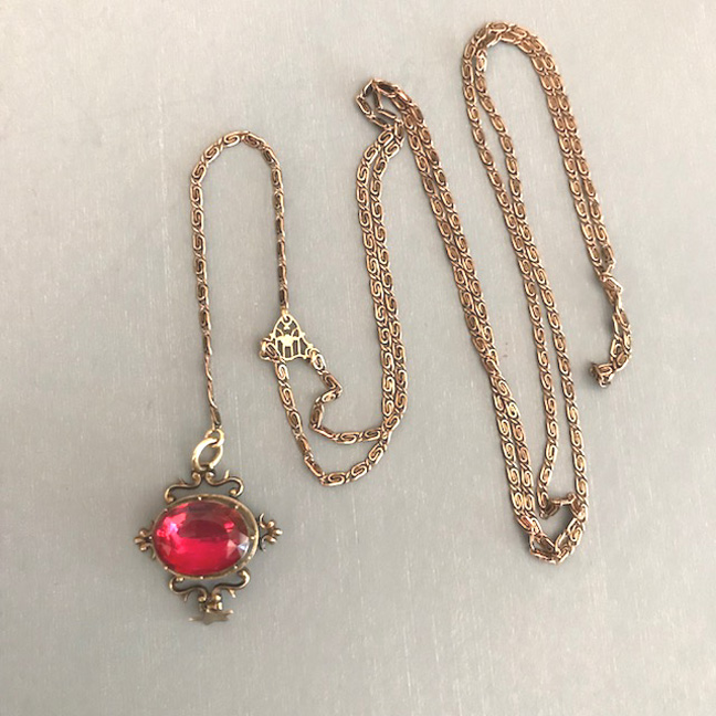 VICTORIAN antique 15 karat yellow gold locket brooch with rubies and seed pearls, applied bead work and wonderful detail, 1-7/8″ by 1-3/4″. The back can be carefully opened to insert a curl of hair or a photograph. Note the wonderful beaded designs and details. There is also a loop on the back where a safety … Continue reading “VICTORIAN antique 15 karat yellow gold locket brooch”