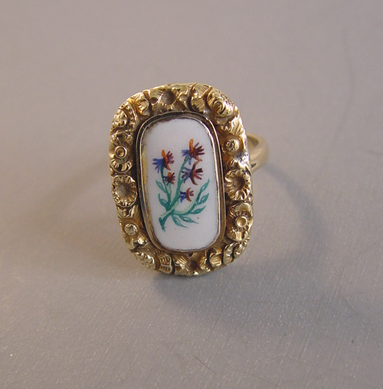 GEORGIAN or early VICTORIAN antique cut steel and green foiled glass cabochons drop earrings, very old and still glowing with color, entire length 1-3/4″. Tinted and foiled quartz pieces of jewelry similar to these can be seen in the wonderful book “Georgian Jewellery” by Ginny Reddington & Tom Dawes on page 102, where they date … Continue reading “GEORGIAN or early VICTORIAN cut steel and green foiled glass cabochons drop earrings, very old”