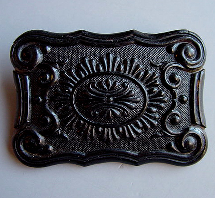 VICTORIAN Whitby jet earrings, hand carved diamond shapes suspended from circles with applied faceted balls and carved edges, total length 2″, jet portion 1-5/8″. These are rare, complete with original Victorian fittings just as they were made circa 1880. We bought them while visiting Whitby with the authors of the two books about jet jewelry, … Continue reading “VICTORIAN Whitby jet earrings, hand carved diamond shapes, faceted balls”