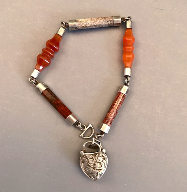 VICTORIAN antique sterling silver charm bracelet, a sterling shamrock good luck charm with a red rhinestone in the center, 7-3/4″ by 1/3″ and the charm is about 7/8″. It tests as sterling, although it is not marked, and it is in excellent condition including the secure clasp, a great addition to your Victorian jewelry wardrobe. … Continue reading “VICTORIAN antique sterling silver charm bracelet and shamrock charm”