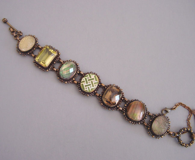 VICTORIAN opal-like glass and cut steel adjustable gold tone bracelet which can be worn as either a 6″, 6-1/2″, or 7″ wearable size. This can be seen in Davidov & Dawes “Victorian Jewelry” page 98. Cut steel is among my favorites and I have had only two bracelets like this in the 30 years I … Continue reading “VICTORIAN opal-like glass and cut steel gold tone adjustable bracelet”