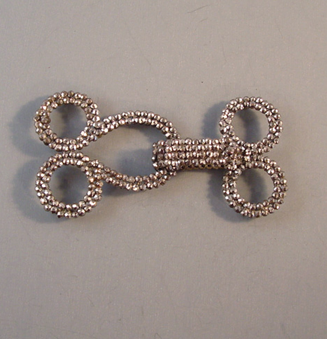 VICTORIAN antique cut steel hook and eye two-piece sew-on closure with a pierced silver backing, total 3″ long by by 1-1/2″ wide. From the 1800s, it is still in amazingly good condition It would be perfect for reenactment clothing like a cape for instance. View View #V37805 $298.00