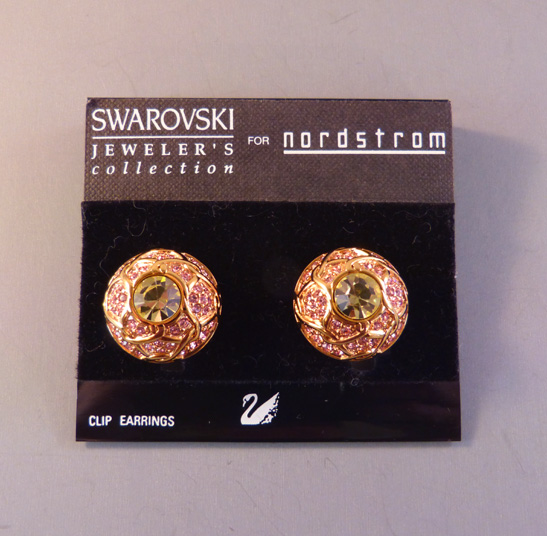 SWAROVSKI Jeweler’s Collection pink and jonquil yellow clip back earrings with the original display card. These were made for Nordstrom in the late 1990s, and they are in excellent condition as thought they were never worn. The clip backs are padded and so they are comfortable to wear, and they have the Swan logo and … Continue reading “SWAROVSKI Jeweler’s Collection pink and jonquil yellow earrings”