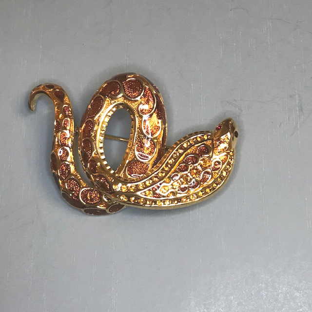 JOAN RIVERS brown enamel over gold metal coiled snake brooch, hisss! It is 2-1/8″ by 1-1/2″. It’s a fun coiling creature. View #X41266 $28.00