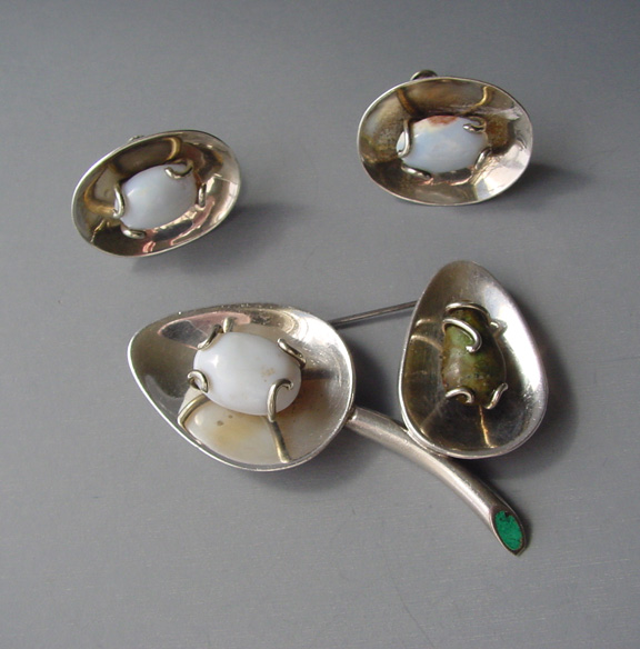 VICTORIAN antique opal-like glass earrings set in sterling silver. They are 1-1/3″ from the small top opal to the very bottom. Each earring is marked on the back “925S” for sterling silver. The coloring is wonderful and these are lovely no matter what they are worn with. View View View View #V42450 $238.00
