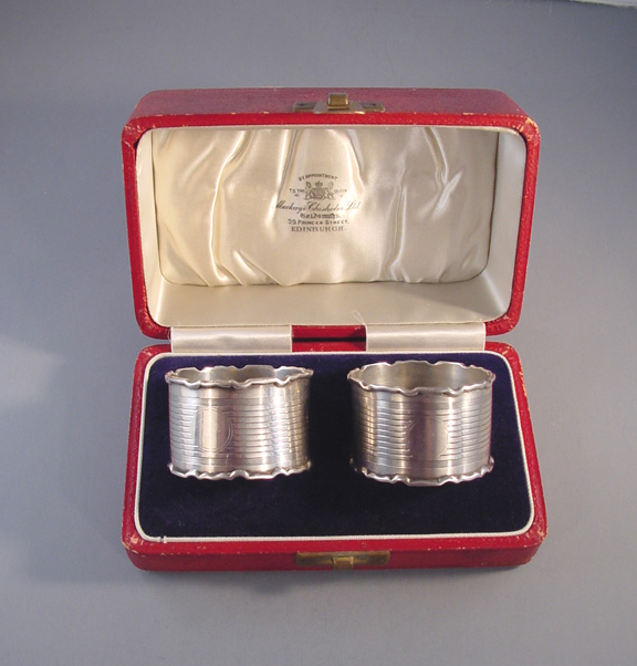 EDWARDIAN boxed sterling silver serviette napkin rings set in the original box, hallmarked 1912, the year of the sinking of the great ocean liner the RMS Titanic. The napkin rings themselves weigh about 1.81 ozs. This would make a great wedding or holiday gift, so special with it’s vintage box, and it has no initials … Continue reading “EDWARDIAN boxed sterling silver serviette napkin rings set 1912”