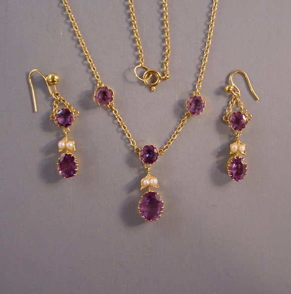 EDWARDIAN 10k purple enamel flower bud pin with a pearl stamen and seed pearls on the leaf, all set in 10 karat yellow gold, made in about 1900. It is a delicate Edwardian beauty that would have looked wonderful on the light-weight white dresses popular in that era. The last photo shows other pins like … Continue reading “EDWARDIAN 10k purple enamel flower bud pin with a pearl stamen and seed pearls on the leaf”