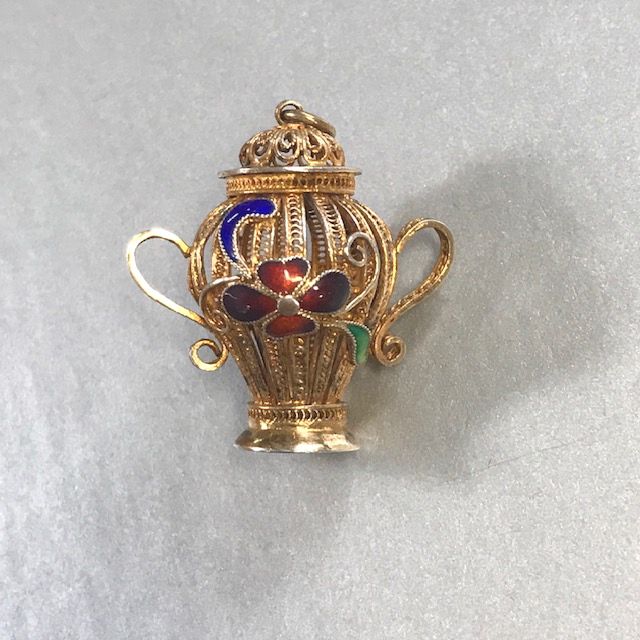 STERLING charm bracelet with 34 puffy heart charms, total length 7″. Among others, the charms include: an engraved and enameled forget-me-not; John; Helen; hand shake; initials HER; Home Sweet Home; cross and anchor; the names Ethyl and Nelleen; fleur-di-lis; an embossed pansy flower; an enameled aqua double heart with “Helen” on the back; one aqua … Continue reading “STERLING charm bracelet with 34 puffy heart charms, total length 7″. Among others, the charms include: an engraved and enameled forget-me-not”