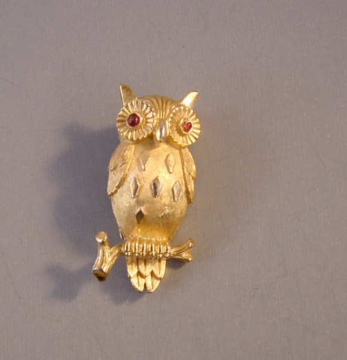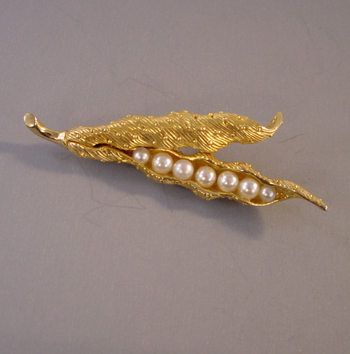 CORO jelly belly large double flower brooch with Lucite flowers and set among gold tone leaves with clear rhinestone veins, finish as is with very light wear. As with many good jewelry pieces, these flowers held on in the back by screws, and the entire brooch is 4″ by 2-1/2″. The Lucite is clear with … Continue reading “CORO jelly belly double flower brooch with Lucite flowers, 1940”