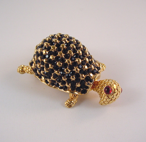 DeROSA sterling vermeil starburst fur clip with glass pearls and sparkling clear rhinestones set into a two layered setting, circa 1940 and 2″ across. This dimensional design is so lovely and it’s one of the reasons I enjoy DeRosa jewelry so very much. View #d22512 $238.00