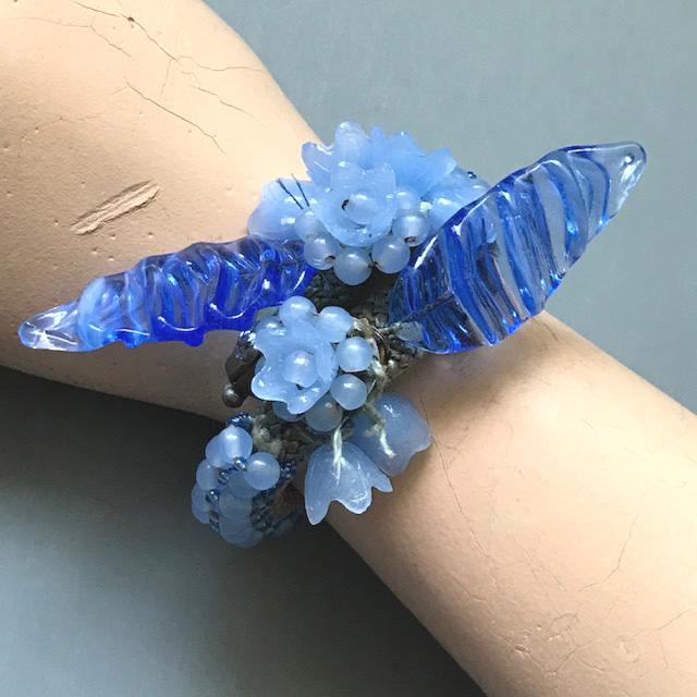 MIRIAM HASKELL late 1930s bracelet designed by Frank Hess with each gold tone link intricately hand woven into the next piece to create the beautiful band. The delicate and beautiful detail on this hand made bracelet makes it a wonderful find. The catch is a green glass disk with tiny gold tone metal flowers holding … Continue reading “MIRIAM HASKELL late 1930s bracelet designed by Frank Hess with each gold tone link intricately linked and a green bead clasp”