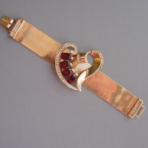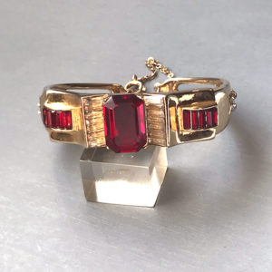 JULIANA DeLizza & Elster wide bracelet with brilliant red marquis shaped rhinestones and red and aurora borealis rhinestone accents