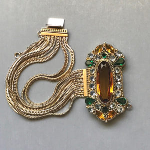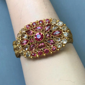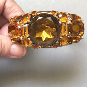 HOBE bracelet with brilliant honey topaz color and clear rhinestones, snap-back hinges on two sides