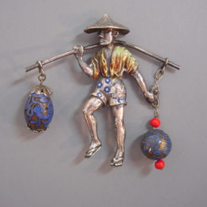 HOBE rare sterling silver charms chatelaine with a brooch at each end, six charms
