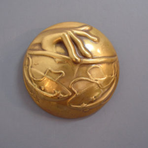 DENICOLA crown pin with clear rhinestones in a matte gold tone setting