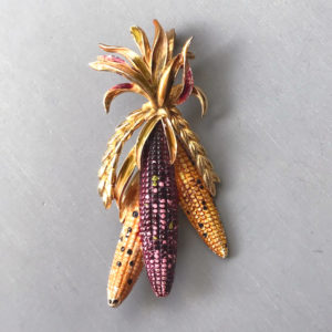 MAZER attributed red and green enameled cherry fur clip, 1942
