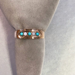 VICTORIAN antique turquoise and pearl 9 ct yellow gold and turquoise ring